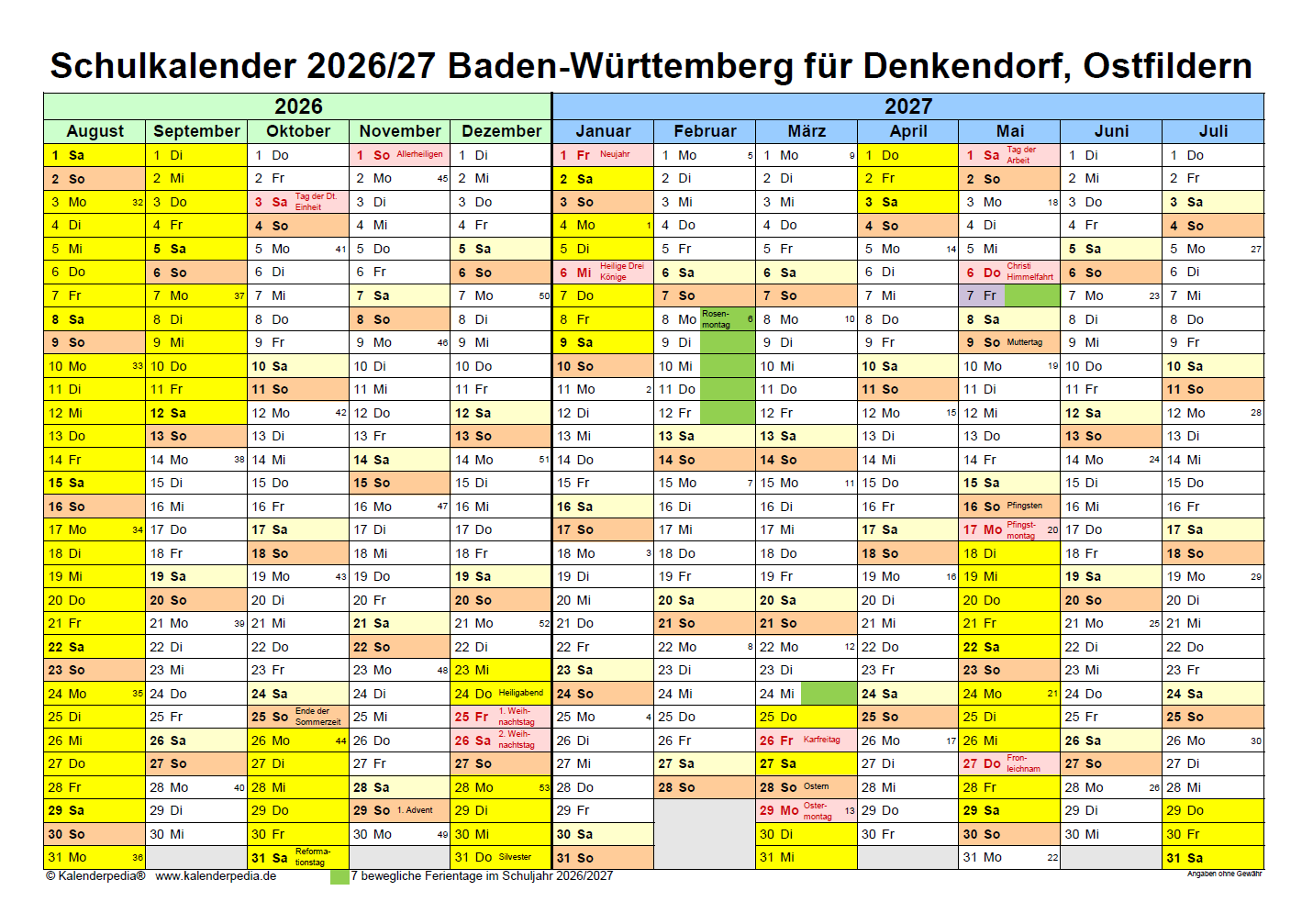 Ferienplan 2025/2026